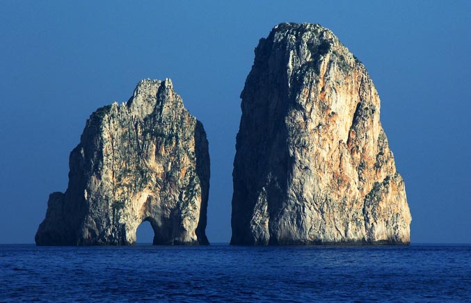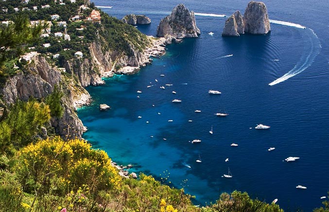 L’île de Capri est un joyau de la baie de Naples, comprenant seulement deux villages Capri et Anacapri, elle fait office d’île-jardin. A une époque lointaine l’île était rattachée au continent, il est estimé que les premiers êtres humains y sont présents depuis l’âge de bronze. Plus tard, l’Empereur romain Tibère y fera construire sa villa. Il s’agit d’une destination en or, Capri est au cœur de la méditerranée et bénéficie d’un climat exceptionnel. Petite île, la mer est facilement visible en tout point et la végétation luxuriante appelle à la détente et à la promenade. Les demeures n’y sont pas en reste, blanchies à la chaux et typiquement méditerranéenne et digne d’une carte postale. De nombreux sites sont à découvrir autour et sur l’île, vous pourrez visiter la grotte bleue, les ruines des villas impériales romaines, la Marina Piccola, le belvédère de Tragara, … Des hôtes illustres vinrent à maintes reprises à Capri attestant ses indéniables qualités.