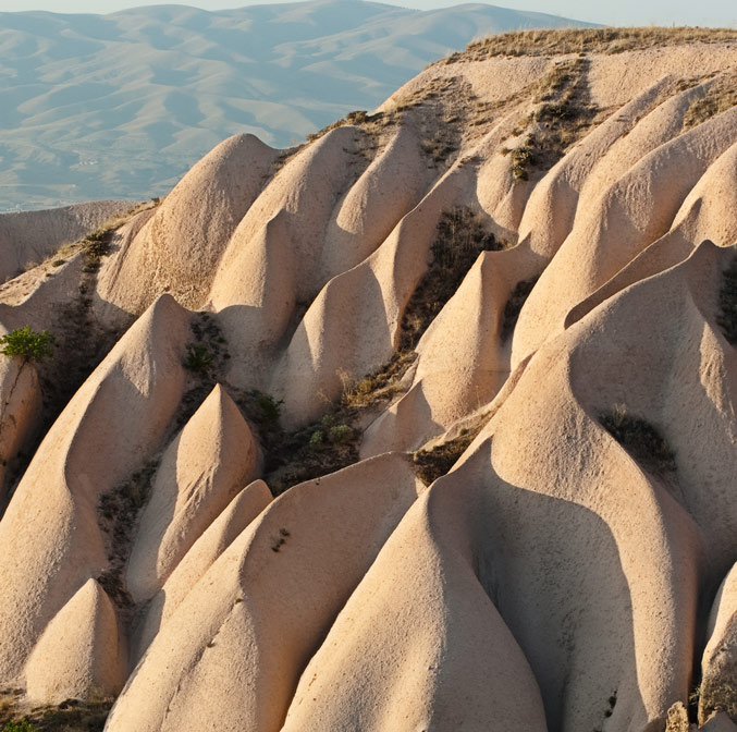 La lave généra des roches tendres qui se répartirent sur la Cappadoce, couvrant une surface de 20 000km2. Profitant de cette roche à l’érosion rapide, facile à travailler, les habitants de la vallée construisirent des églises, des monastères et des habitations directement logés dans la roche. En les décorant de fresques byzantines de la période post-iconoclaste, ils firent de ce centre religieux l’un des plus beaux sites touristiques de Turquie.