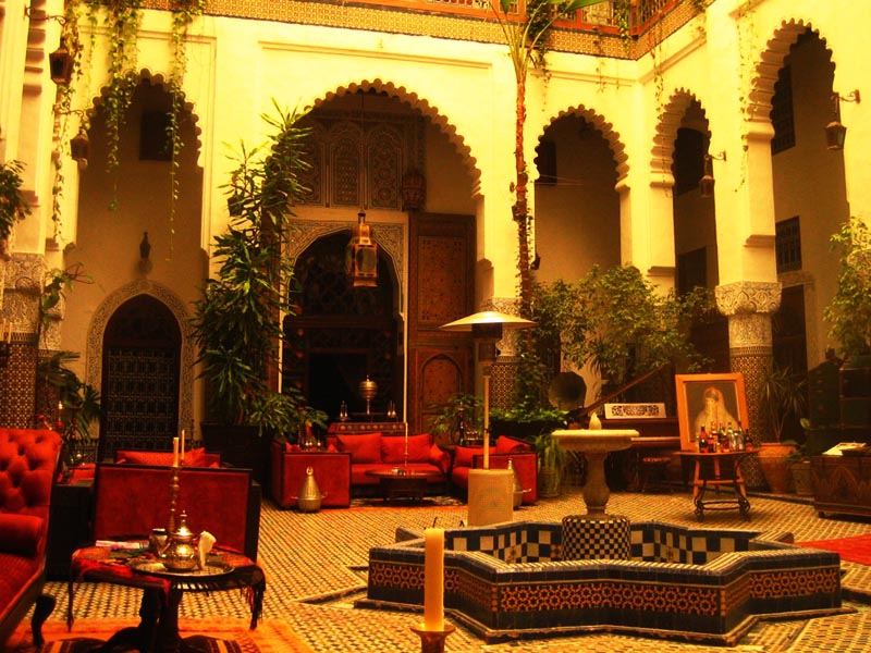 Ethymologiquement, riad signifie « jardin » en arabe et ces constructions étaient caractéristiques des médinas, les anciennes villes du Maroc. Les riads font figure de paradis marocains, en effet les maisons sont organisées autour du jardin et sont fermées sur l’extérieur, permettant ainsi aux habitants d’avoir de l’intimité sans toutefois se priver du soleil et d’une habitation en centre-ville.