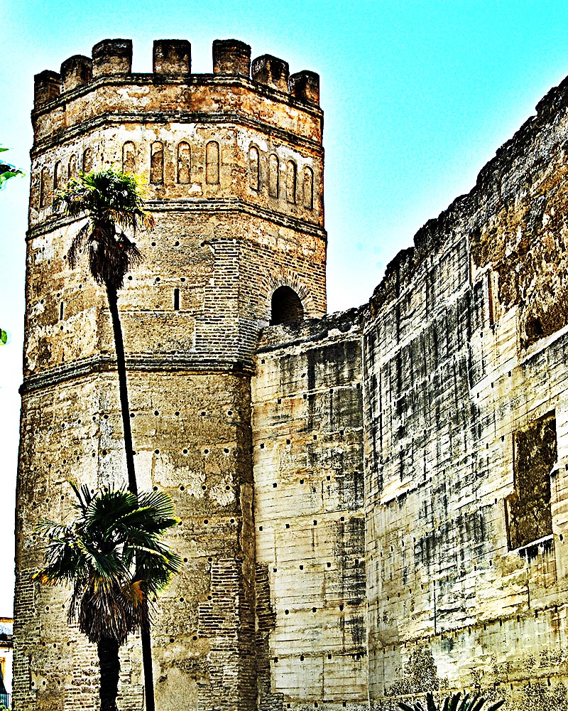 Le terme « alcazar » vient de l'arabe « al-qasr » : ensemble d'édifices, entourés de murailles, servant de siège au pouvoir politique et militaire. L'Alcazar de Jerez est l'un des monuments les plus emblématiques de la ville. Il fut construit au XIIème siècle et constitue l'un des rares exemples d'architecture almohade de la Péninsule. Il s’agit d’un joyau du style almohade, genre architectural qui emprunt des influences musulmanes. A la fois laissé à l’abandon et restauré, l’Alcazar de Jerez a connu des influences chrétienne et baroque. L’édifice se présente sous la forme d’un quadrilatère et abrite la Tour de Ponce de León, la Tour de l'Homenaje et le Palais du Patio de Doña Blanca. La citadelle comprend également une mosquée, reconvertie en chapelle pendant la Reconquista, ainsi que des hammams. L’ensemble fut classé monument historique en 1931 et en 1981 la mairie parvient à s’approprier les lieux. Depuis, le monument est patiemment restauré et ouvert à la visite. Il s’agit d’un des rares vestiges des conquêtes arabes en Espagne, à visiter notamment pour ses magnifiques jardins et son étonnante architecture.