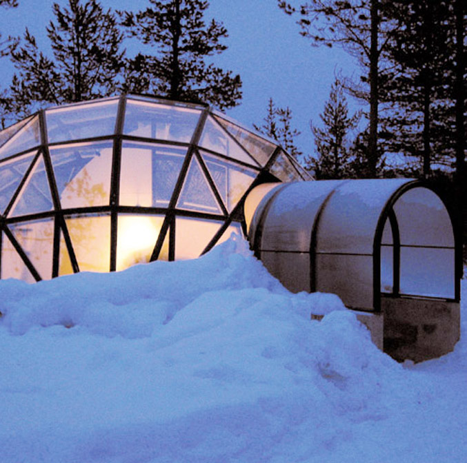 Ils courent en deux rangs serrés sur le chemin de neige. Le chien de tête aux yeux de cristal aboie pour stimuler la meute, un jappement bref, sitôt absorbé par l'épais manteau blanc du paysage. L'attelage file entre les arbres givrés. La nuit polaire cède à la lumière pâle d'une aube qui se prolongera durant deux heures. L'hiver du Grand Nord se drape de parme, de rose et bleu pâle. La paix qu'offrent les crépuscules nous enveloppe, gagne nos esprits, chasse les ombres. Nous glissons à travers la nature vierge de Laponie accrochés à nos traîneaux de bois. Après deux heures, nous nous arrêtons. Dans une cabane en rondins, un feu crépite sur lequel Minna réchauffe une soupe au saumon. Nous reprenons la route avec nos équipements qui font oublier la température négative. Les chiens galopent durant près de deux heures jusqu’à la tombée de la nuit sous un ciel orangé. Nous regagnons ensuite nos igloos de verre chauffés. Et même si le sommeil nous gagne peu à peu, on ne peut s’empêcher de scruter la nuit arctique à travers l’igloo de verre. Le lendemain, on se prend à rêver de cette vie polaire, au bord d’un lac gelé où nous découpons un trou pour tenter de pêcher un poisson-chat ou une perche. Les heures filent dans cette immensité jusqu’au déjeuner au coin du feu. Puis, vient l’heure Finlandaise, l’heure du sauna. On se détend dans cette atmosphère purifiante au craquement des pierres brûlantes. Une expérience qui séduira les amoureux du grand blanc et de la nature à l’état pur.